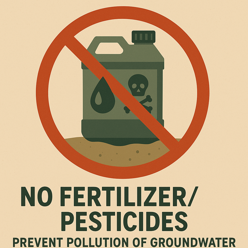 • No chemical fertilizers or pesticides → Prevent chemical runoff, protect groundwater