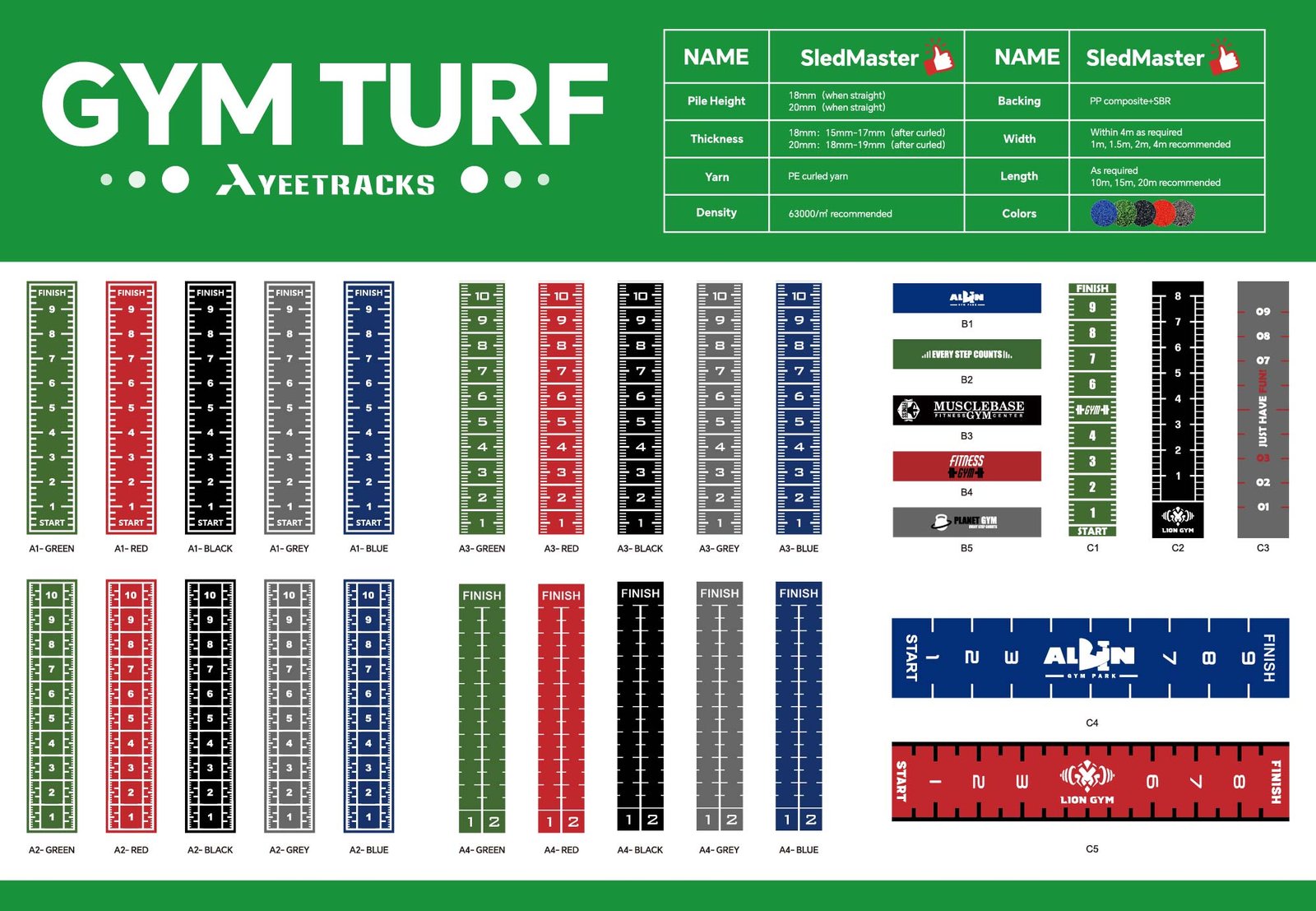 - Choose turf colors: green, black, gray, blue, or custom brand colors