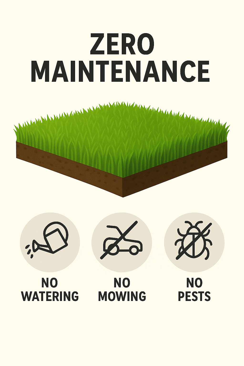 | Maintenance | Constant watering, mowing | Low upkeep, occasional rinsing |